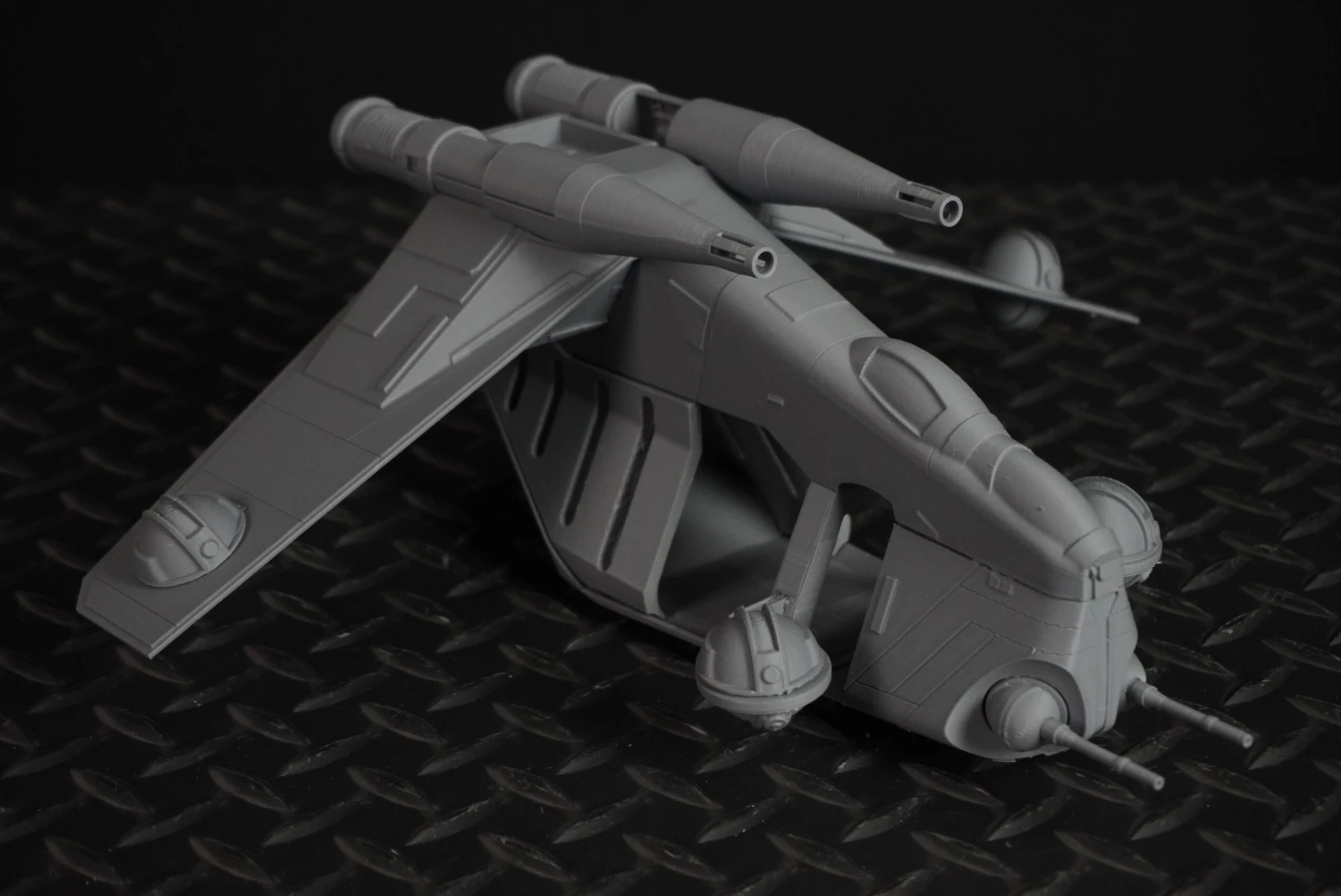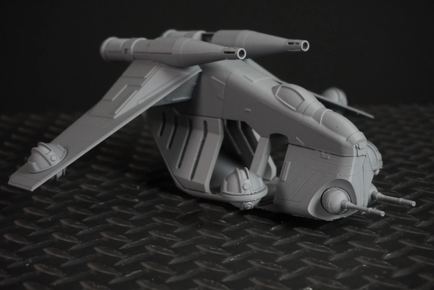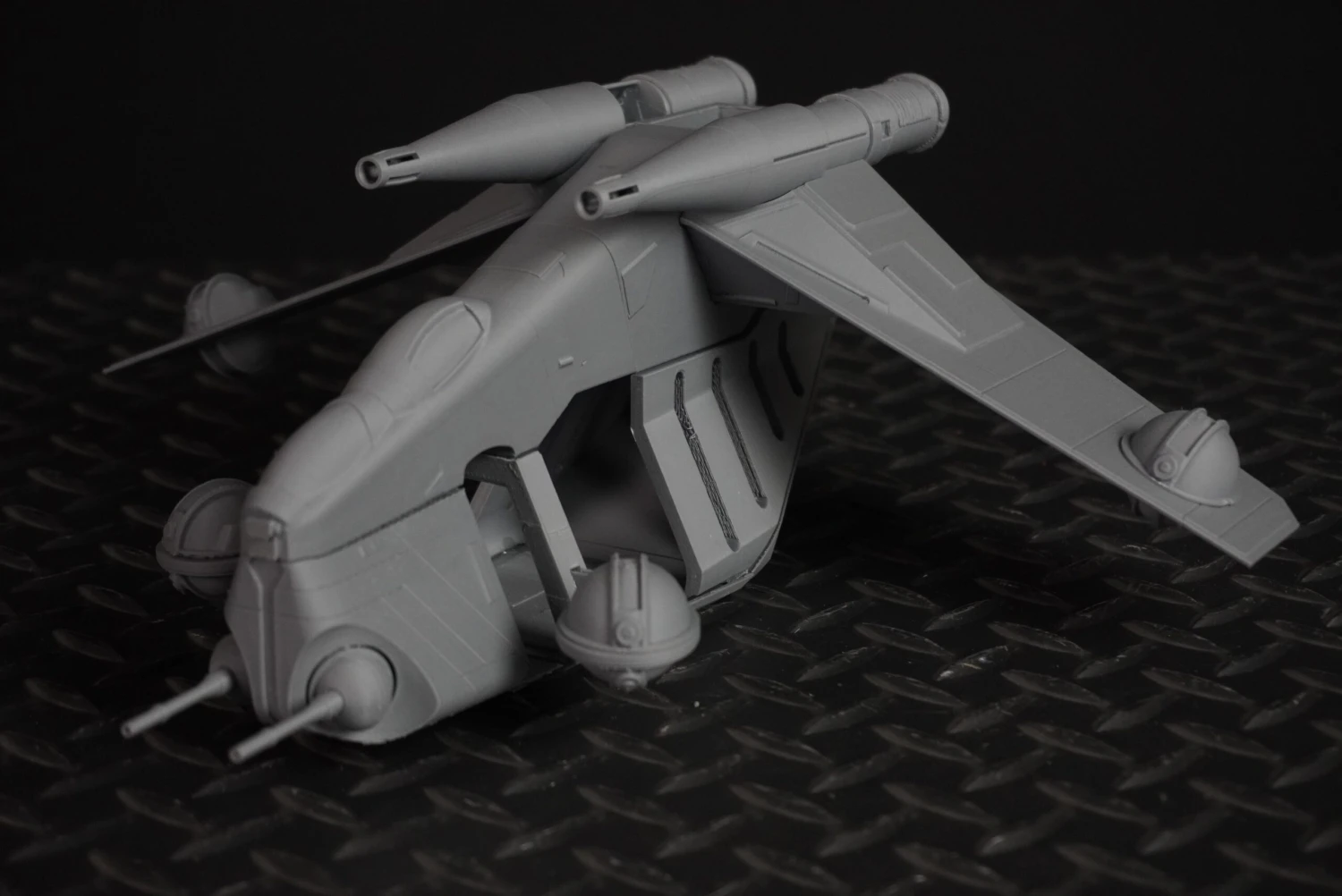 Raw 3d printed parts for a 1:48 scale LAAT Gunship as seen in the Clone Wars