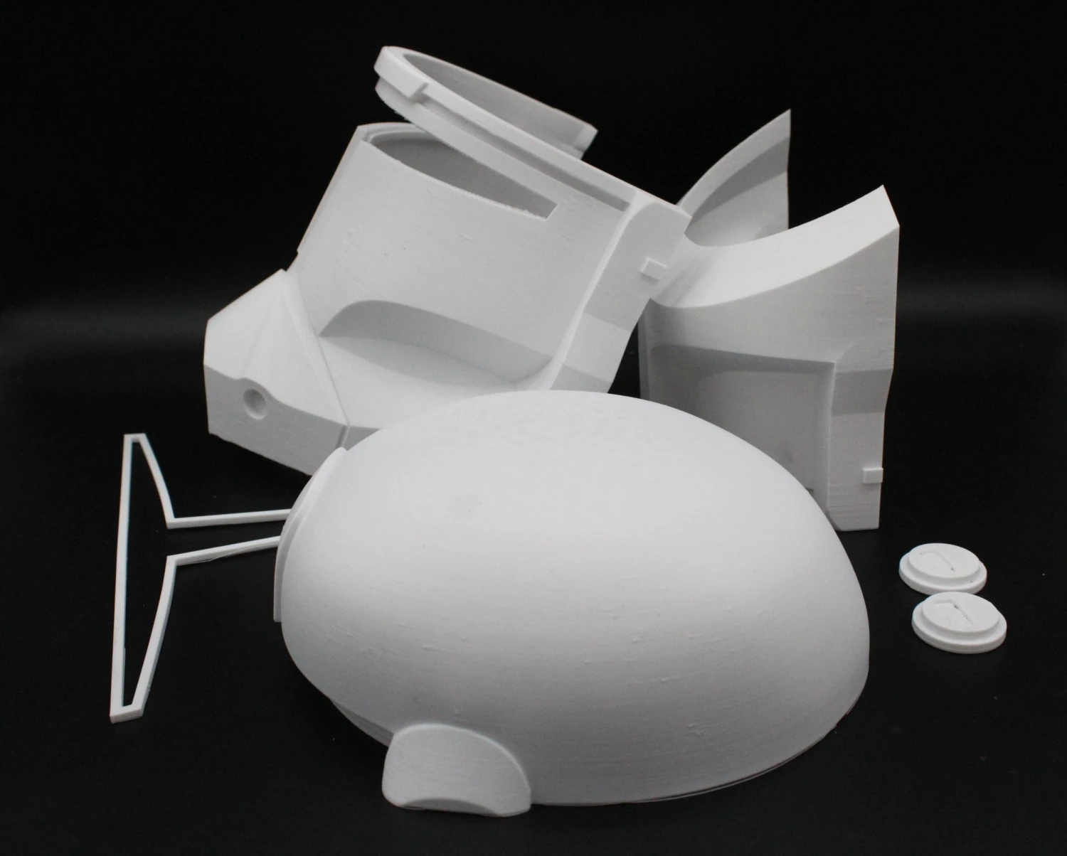 This helmet comes pre-separated into 3 main pieces and 3 accessories