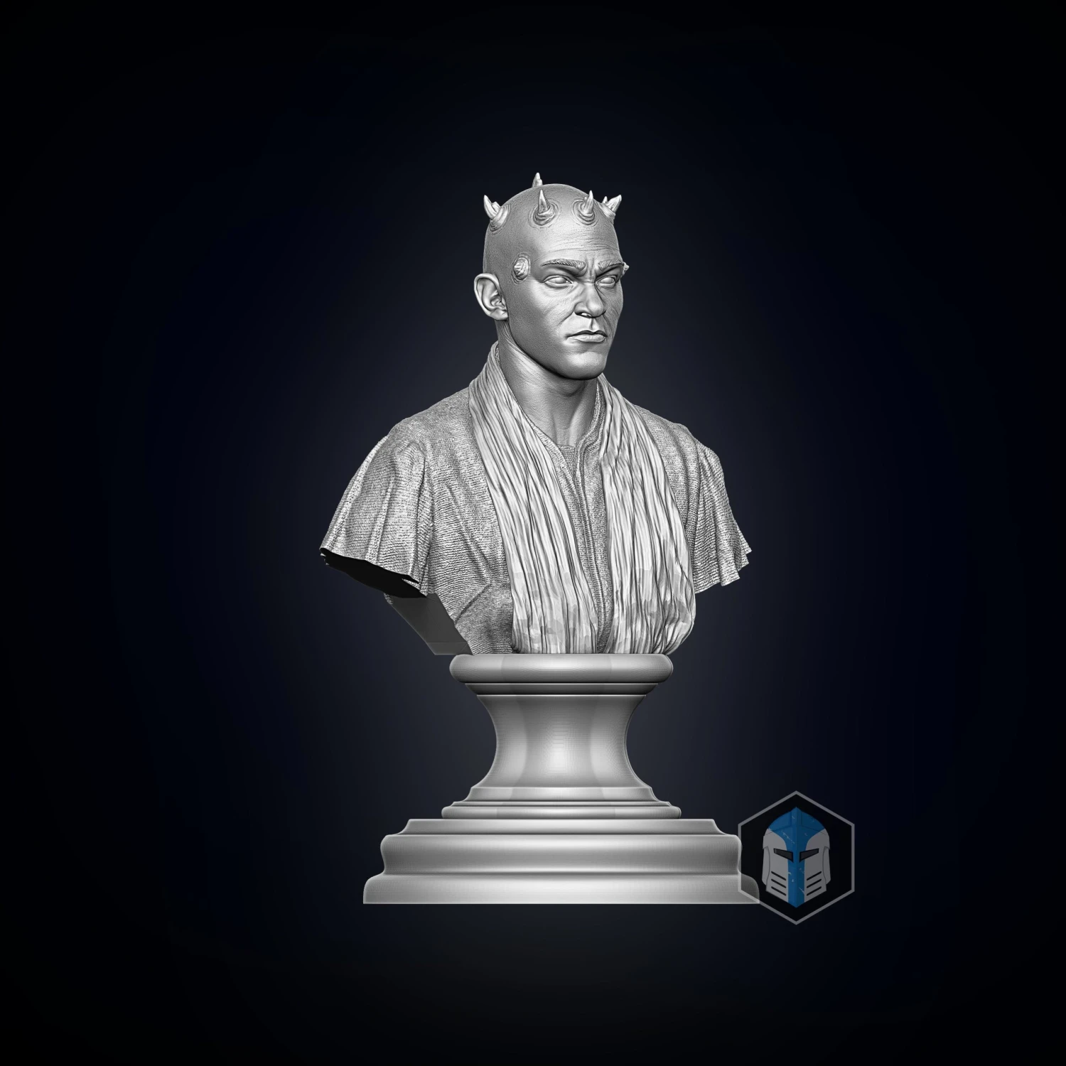 Standing at over 6″ tall by default, this bust can be printed as a solid piece or as 3 interlocking pieces. Thanks to the high details it can be scaled up very easily.