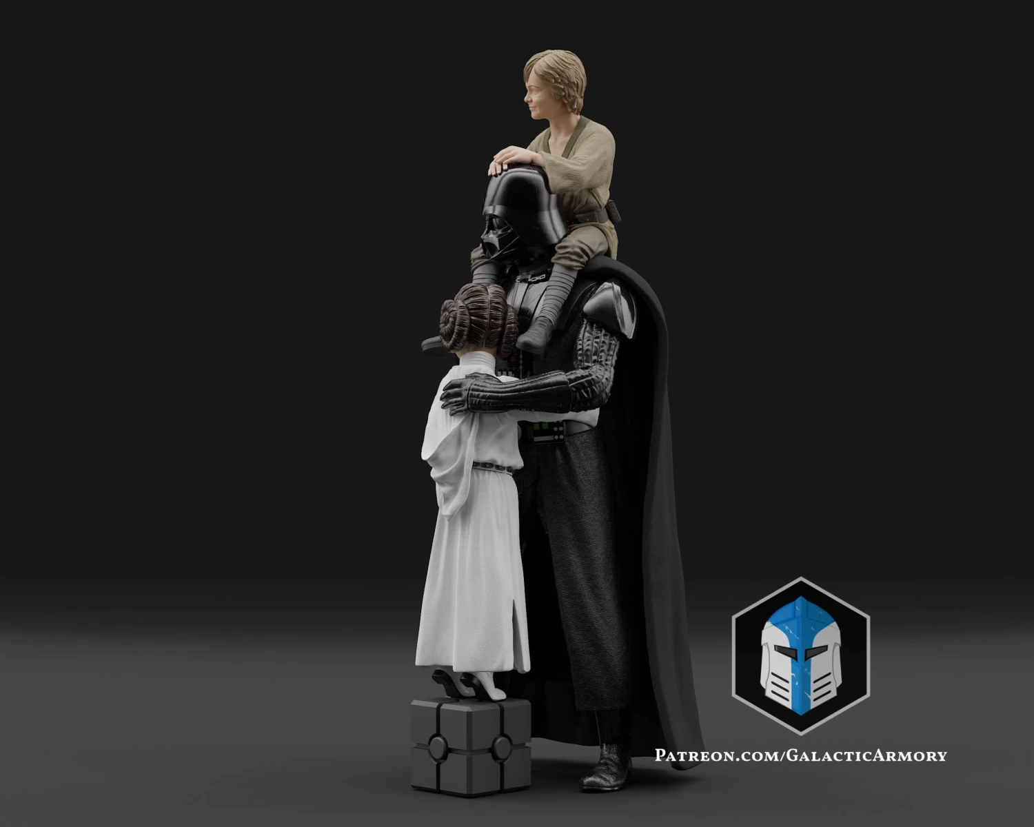 A “What If?” concept of Darth Vader with a young Luke Skywalker and Princess Leia