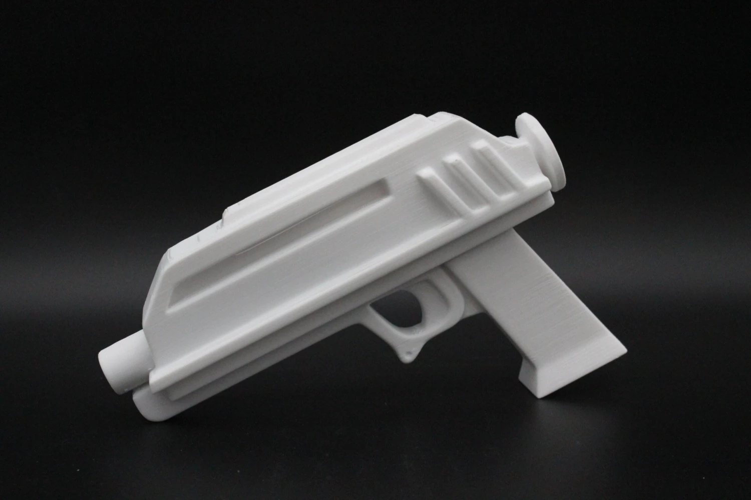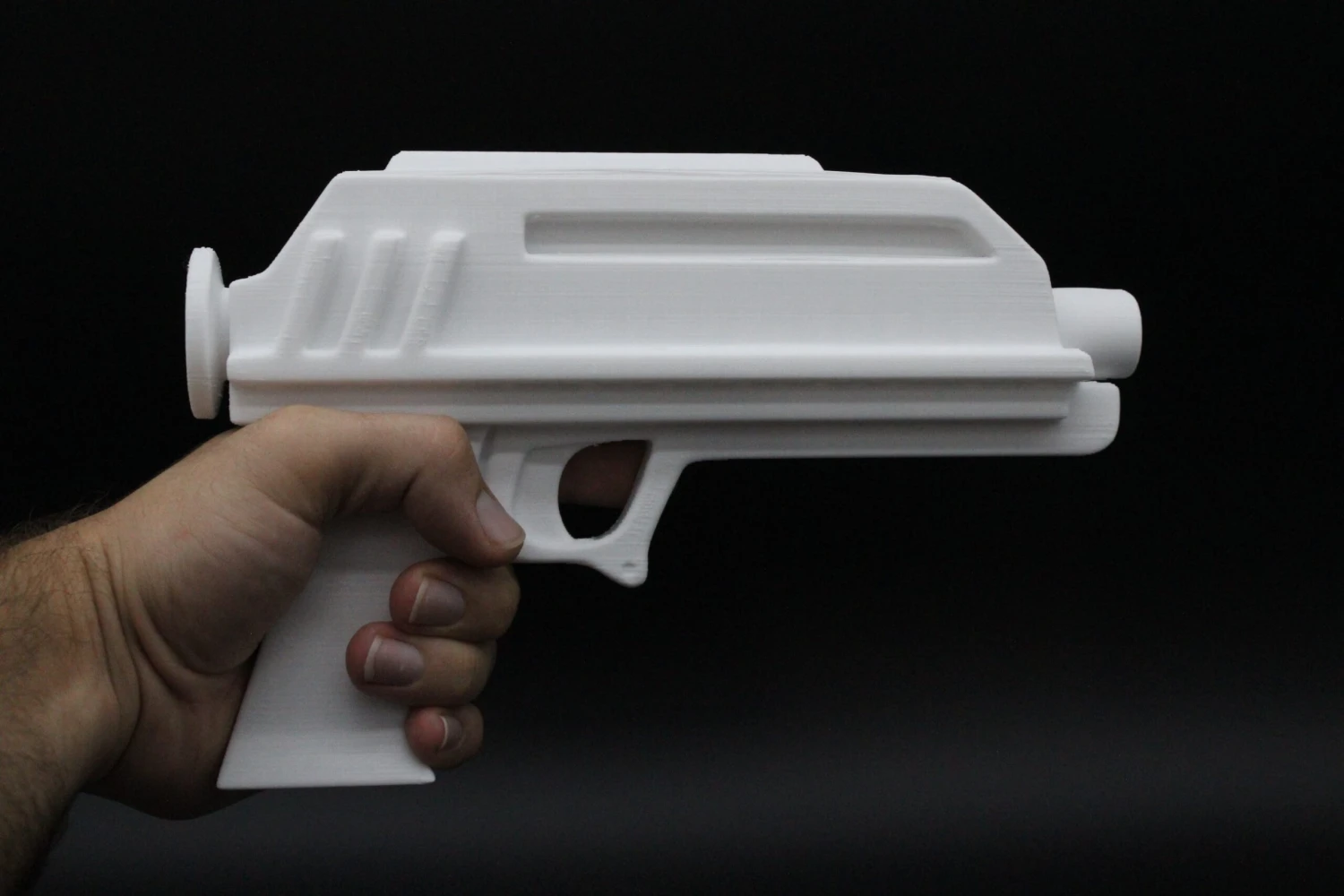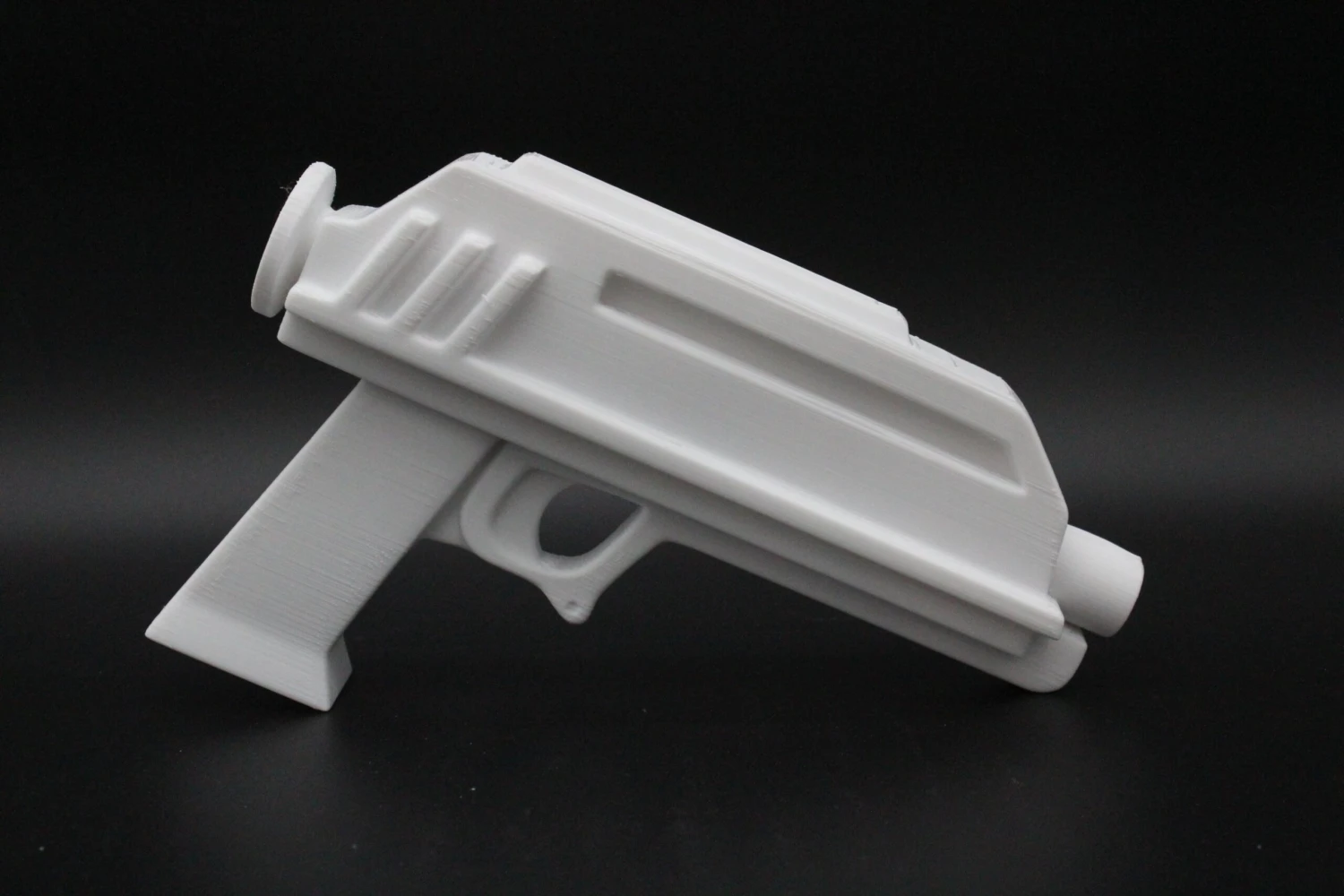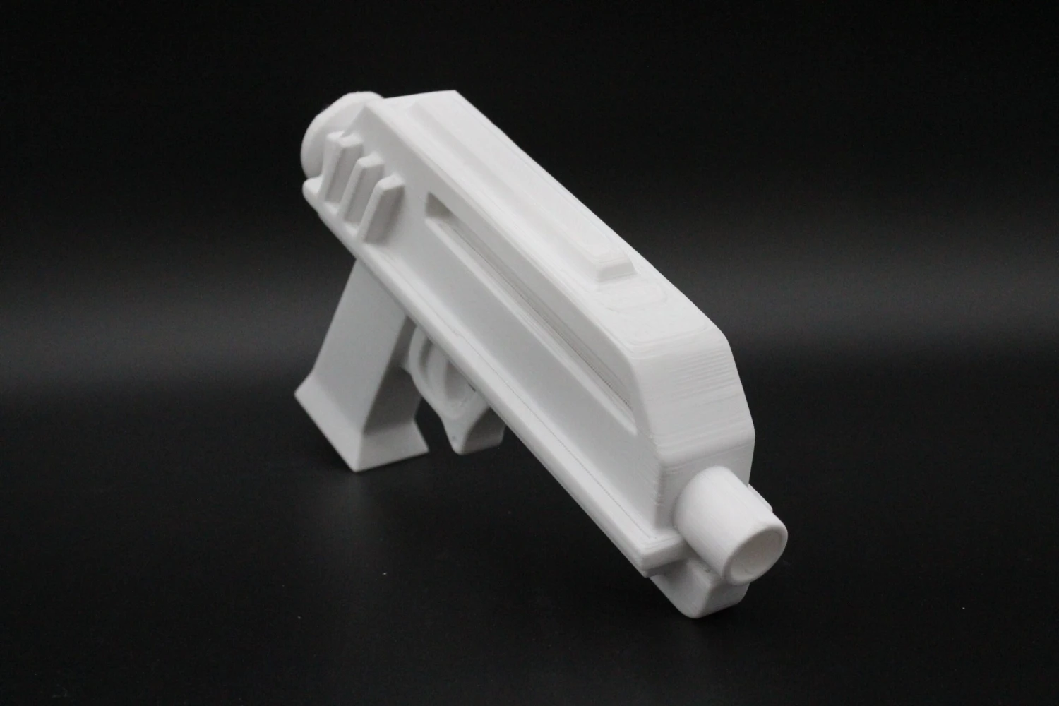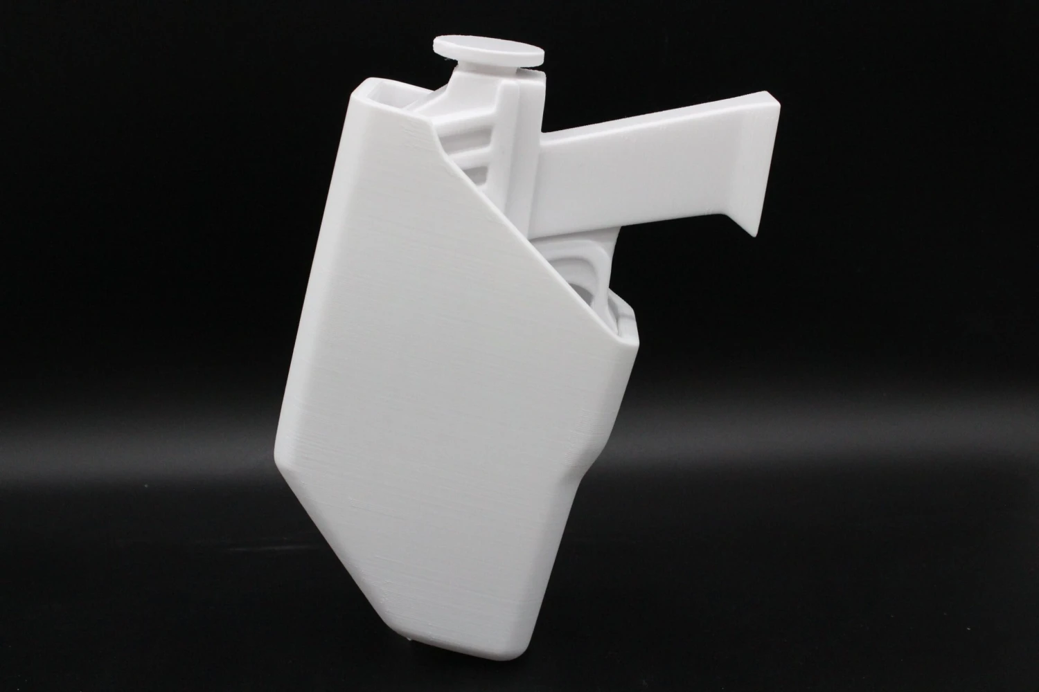 This 3D printed blaster comes in 1 single piece. Printed in PLA with a large enough infill to feel heavy in your hand.