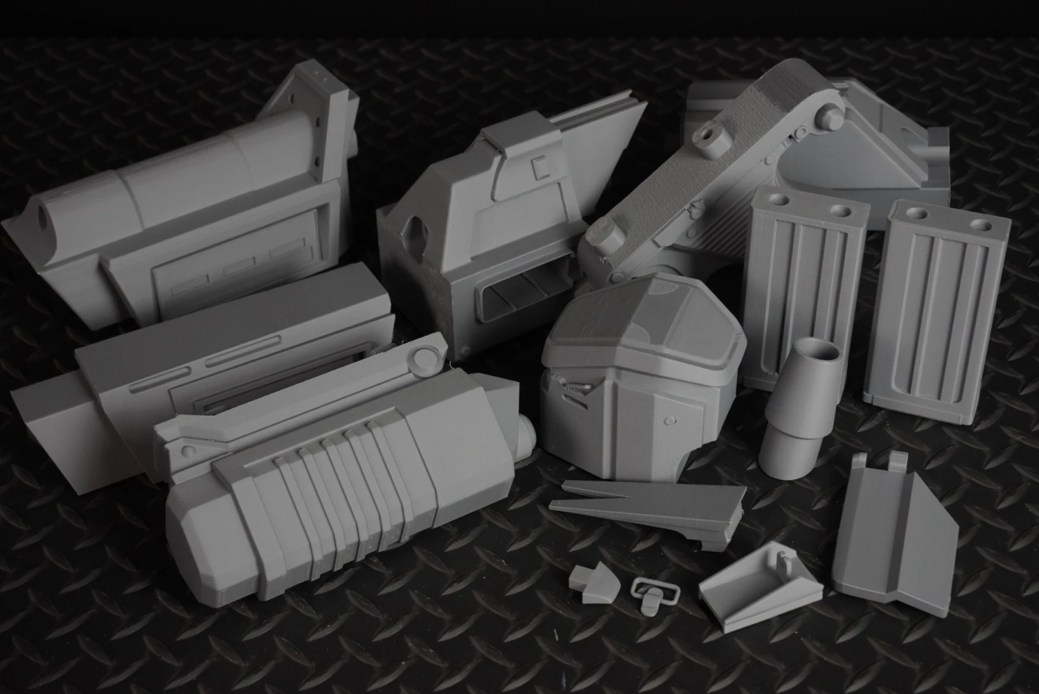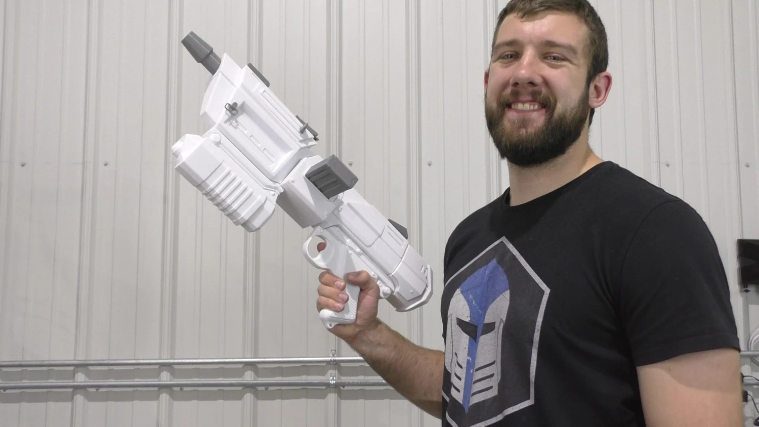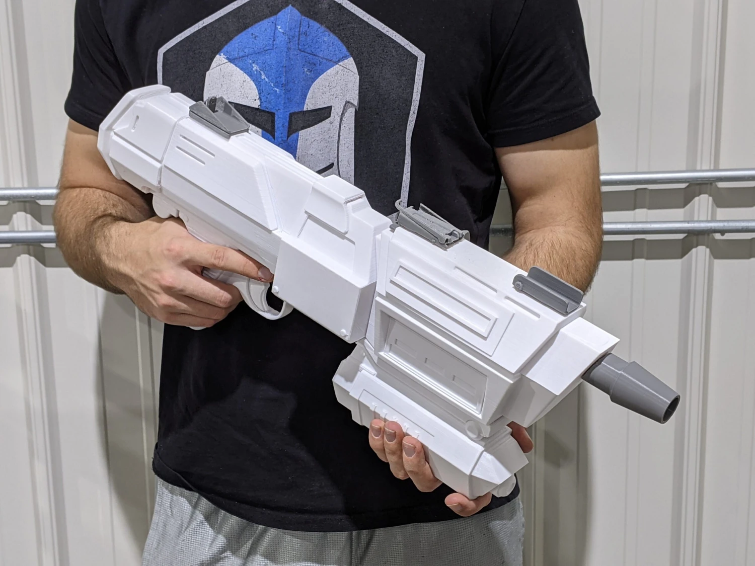Assembled from 15 individual pieces, this blaster comes pre-separated for easy assembly and finishing. This blaster is 25″ long when fully assembled.