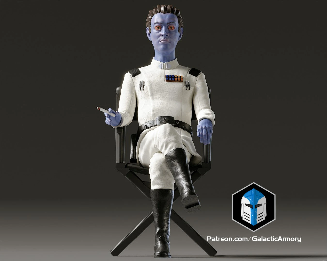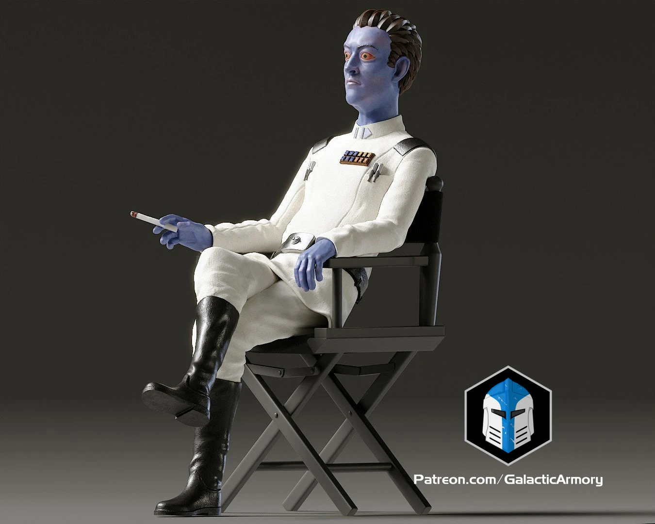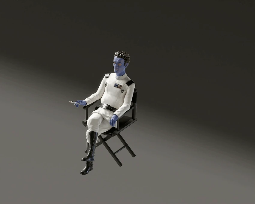 3D Print Files in STL format of a casual Grand Admiral Thrawn taking a break. Inspired by BTS photos from Ahsoka