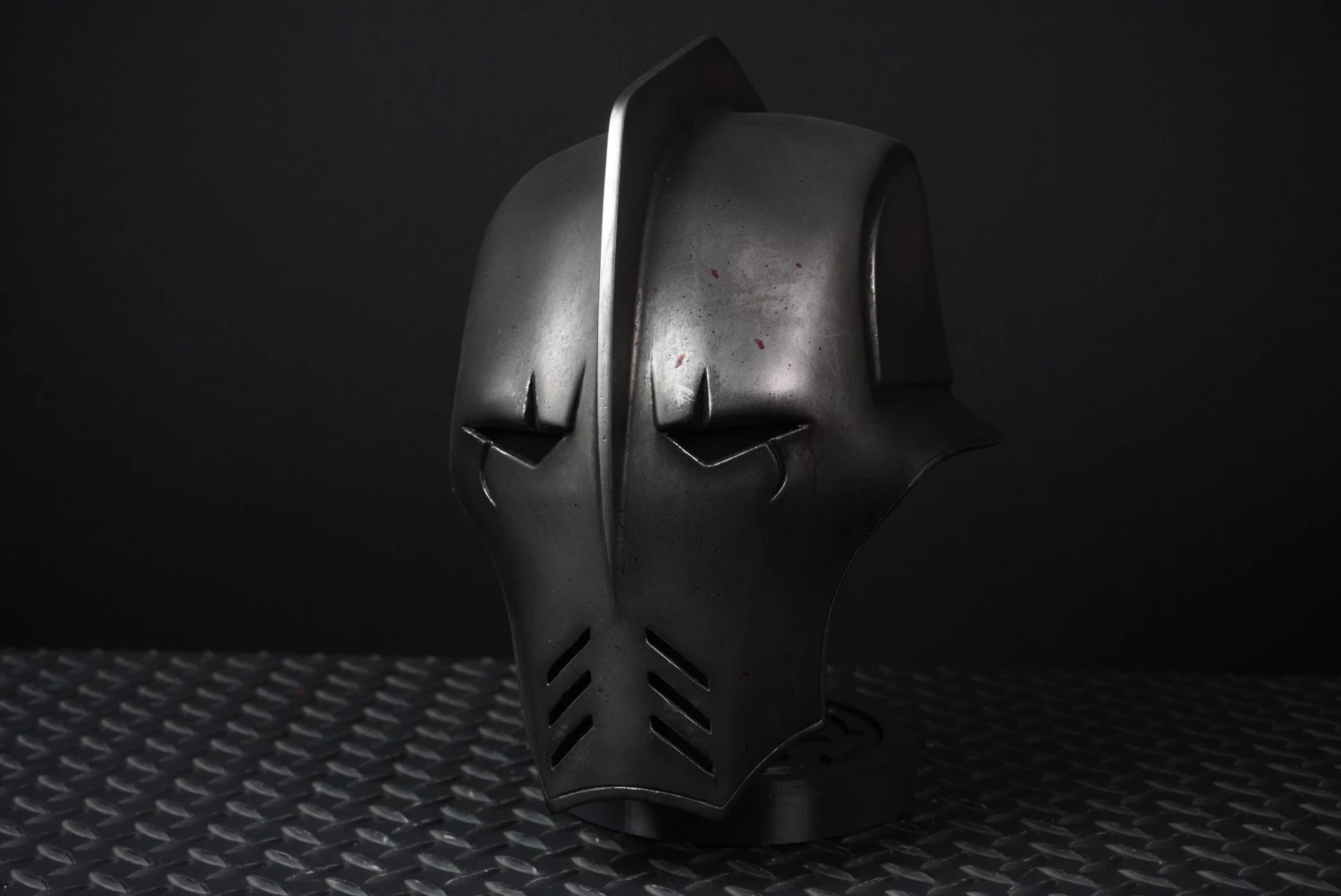 A raw 3d printed Durge helmet as seen in the 2003 Clone Wars miniseries