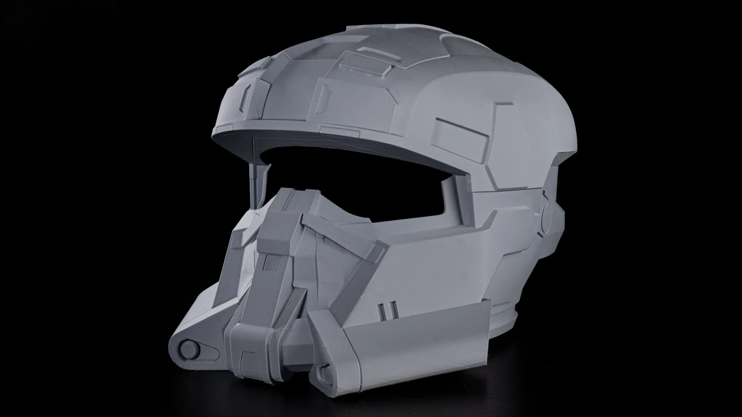 The helmet is printed in durable PLA at an extremely high detail level.Â