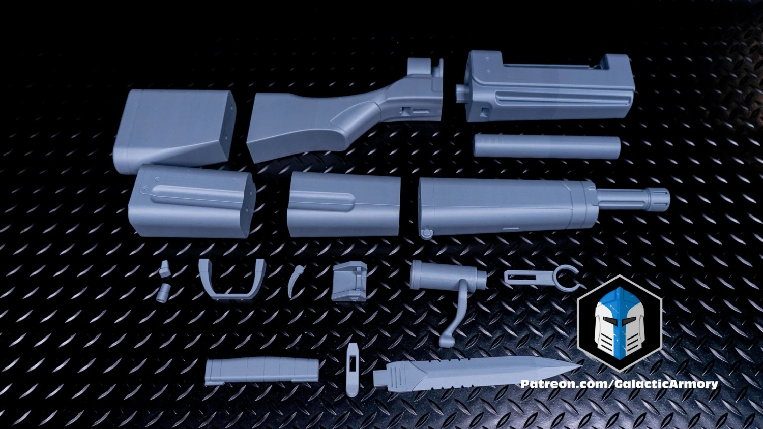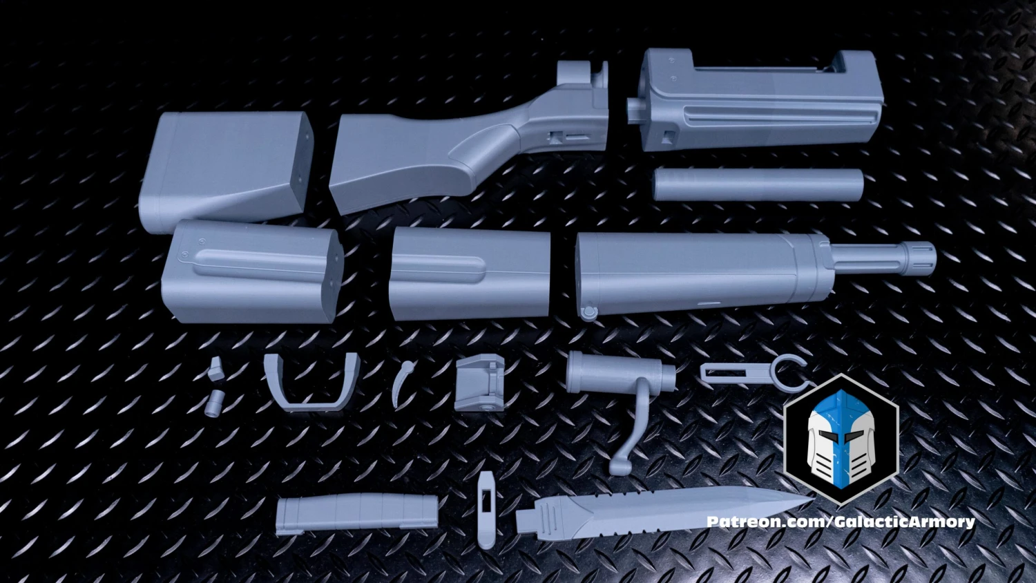 The rifle is shipped in 18 pre-separated parts that interlock together.