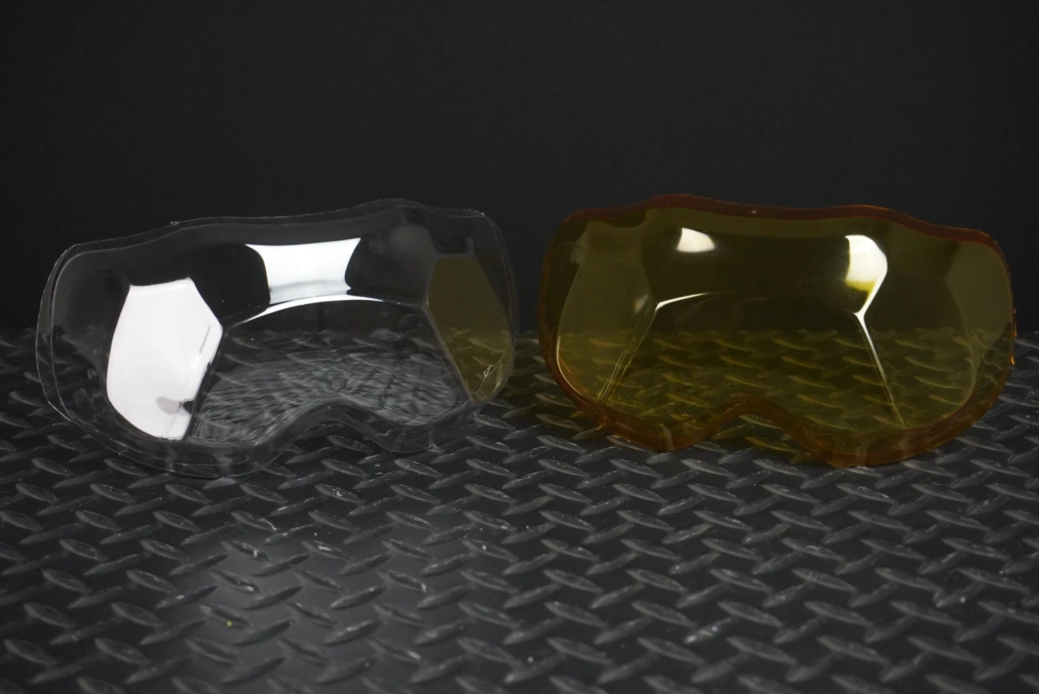 The clear comes as a rough trimmed visor while the dyed version comes dyed a golden yellow color.